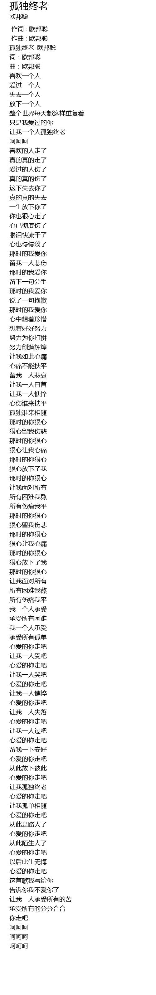 | [00:00.961] | 孤独终老-欧邦聪 |
