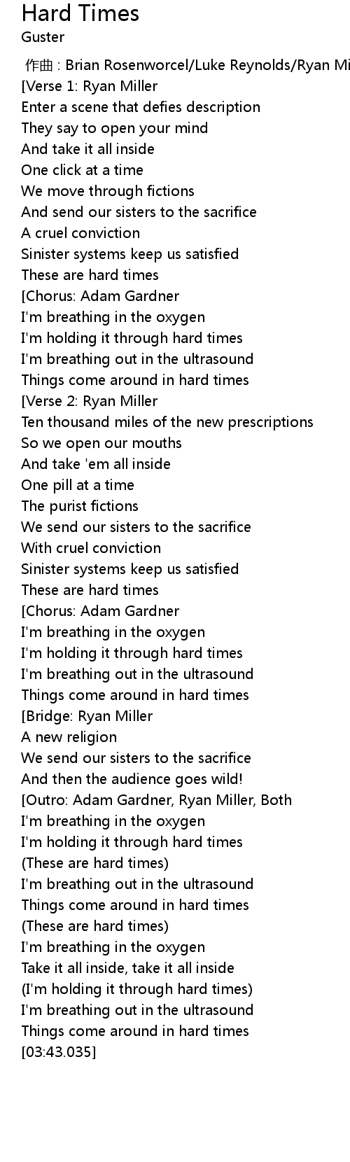 | [03:09.867] | (These are hard times) |