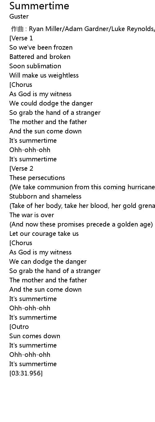 | [00:00.000] | 作曲 : Ryan Miller/Adam Gardner/Luke Reynolds/Brian Rosenworcel |