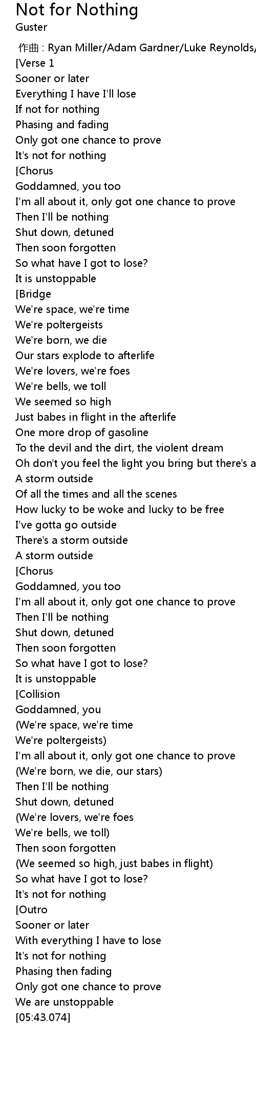 | [00:00.000] | 作曲 : Ryan Miller/Adam Gardner/Luke Reynolds/Brian Rosenworcel |