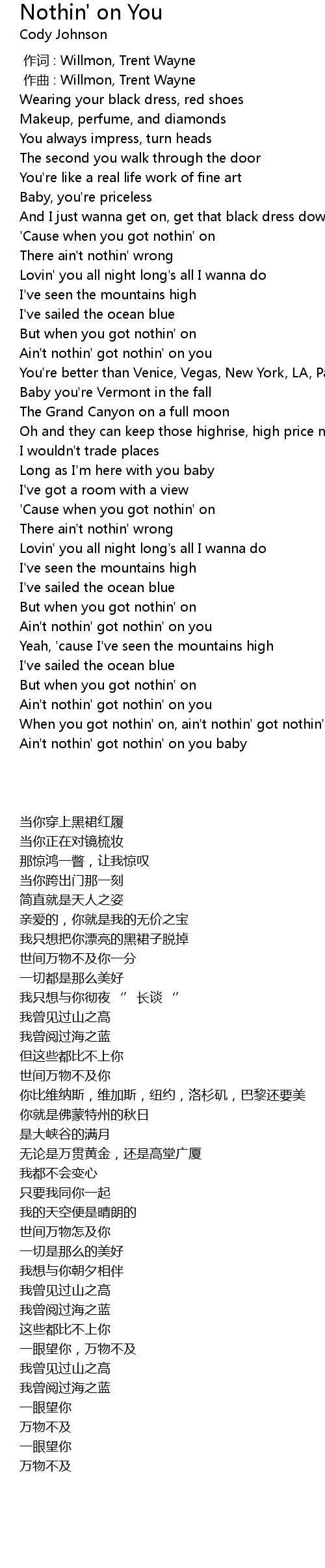 | [02:52.49] | Ain' t nothin' got nothin' on you |
