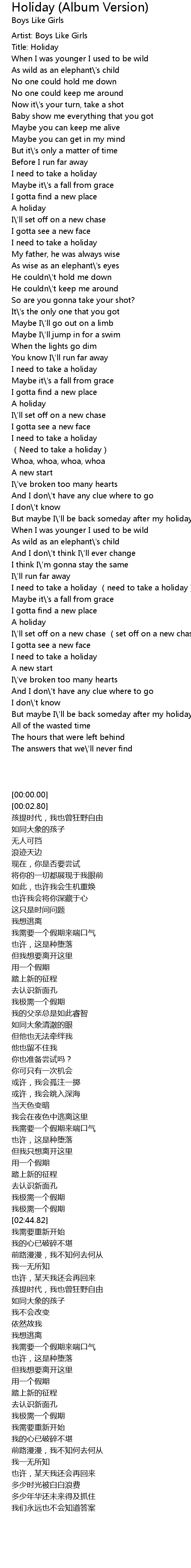 | [03:29.48] | I need to take a holiday (need to take a holiday) |