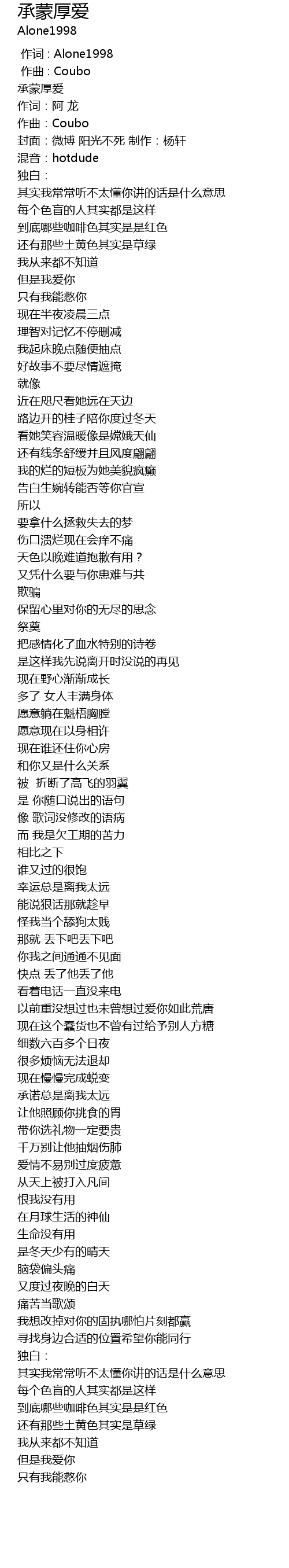 | [00:05.158] | 封面:微博 阳光不死 制作:杨轩 |