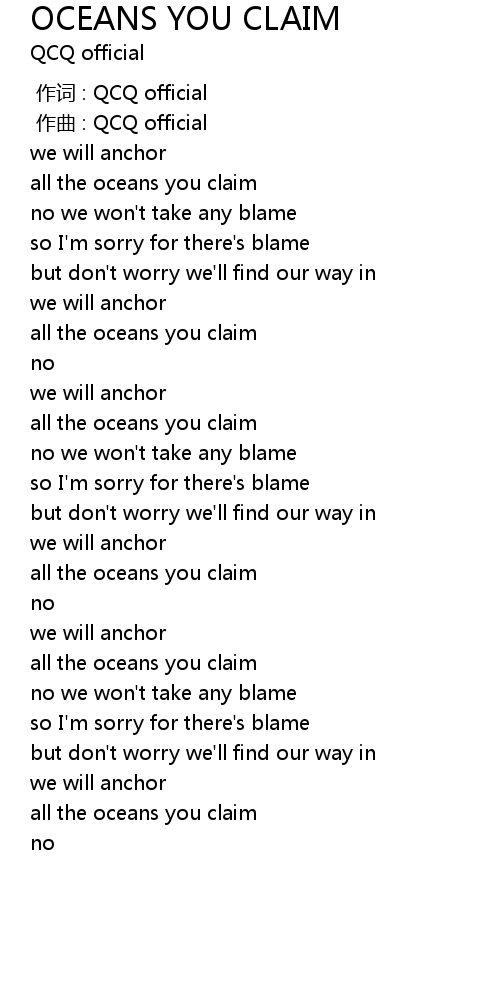 | Song | OCEANS YOU CLAIM |