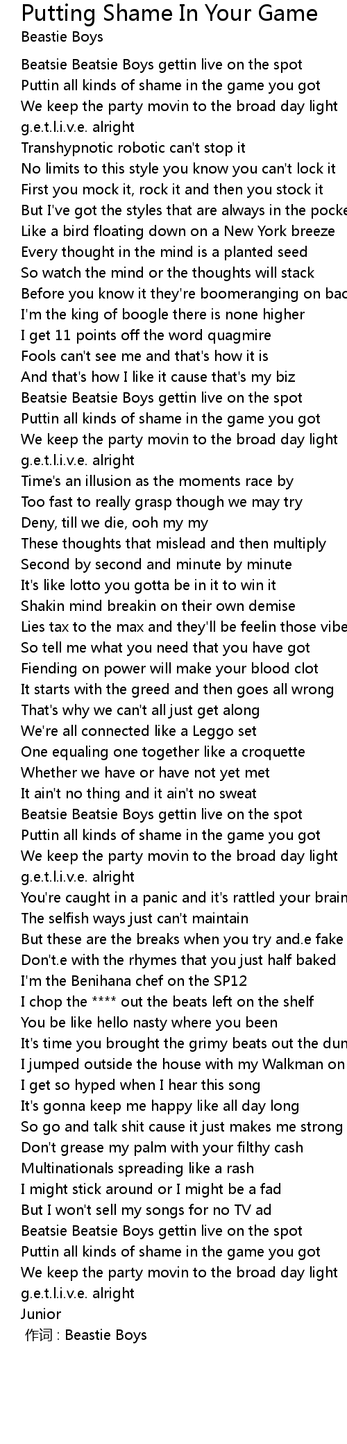| [01:55] | Puttin all kinds of shame in the game you got |