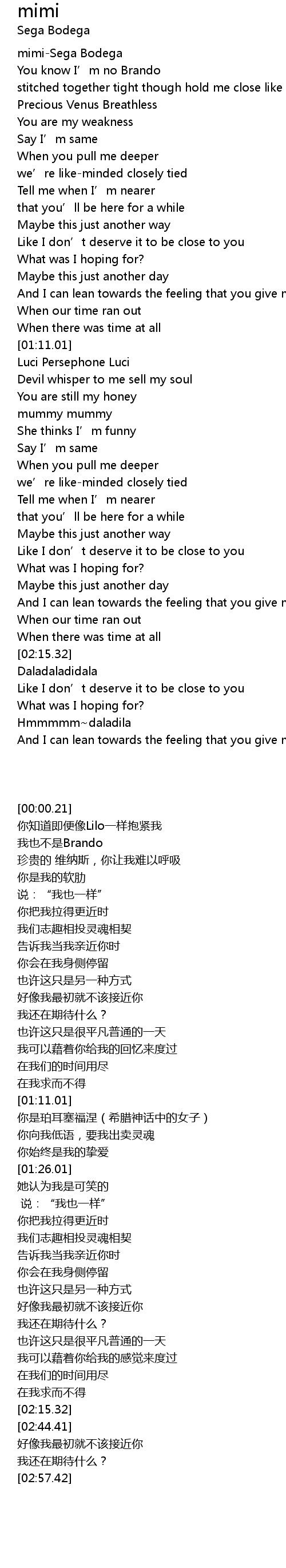 | [00:00.21] | mimi-Sega Bodega |