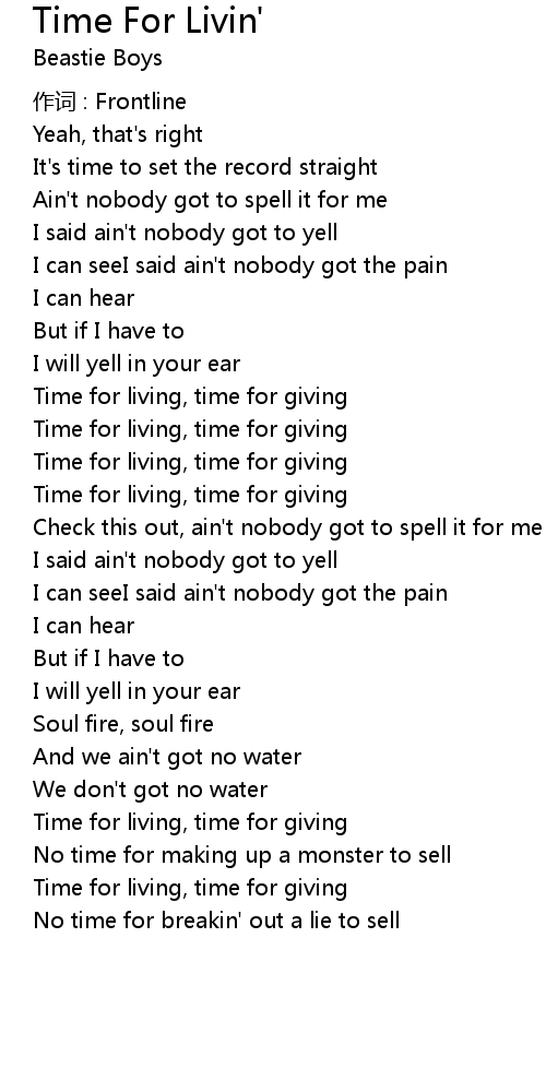 | Song | Time For Livin' |