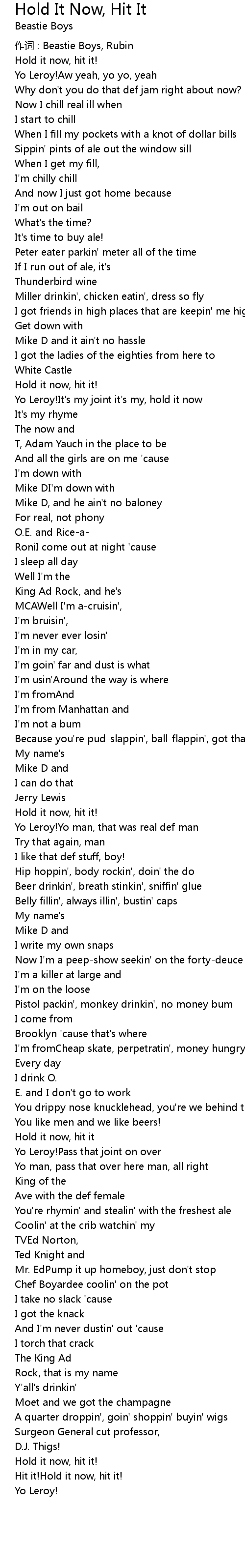| 作词 : Beastie Boys, Rubin | |