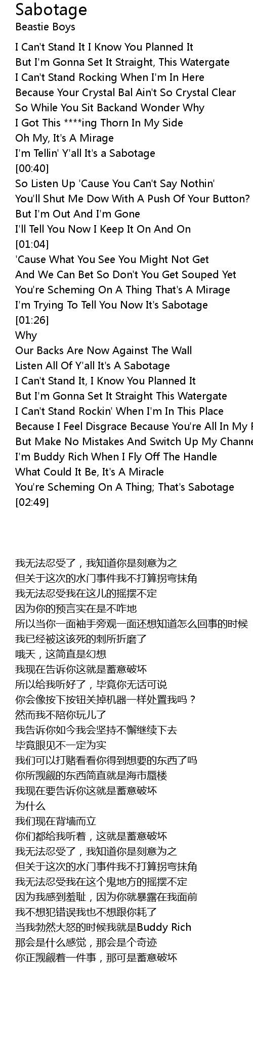 I'm Trying To Tell You Now It's Sabotage |