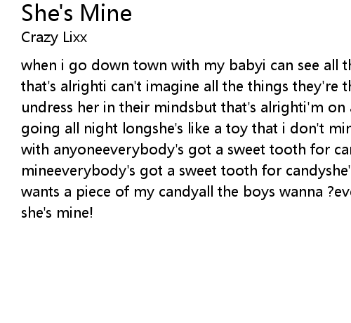 when i go down town with my babyi can see all the guys they go wide-eyedbut that's alrighti can't imagine all the things they're thinkingand the way they undress her in their mindsbut that's alrighti'm on a road that she keeps on going all night longshe's like a toy that i don't mind showing, but don't share with anyoneeverybody's got a sweet tooth for candythey wanna get a piece of mineeverybody's got a sweet tooth for candyshe's mine, she's all mineeverybody wants a piece of my candyall the boys wanna ?everybody wants to have herbut she's mine! |