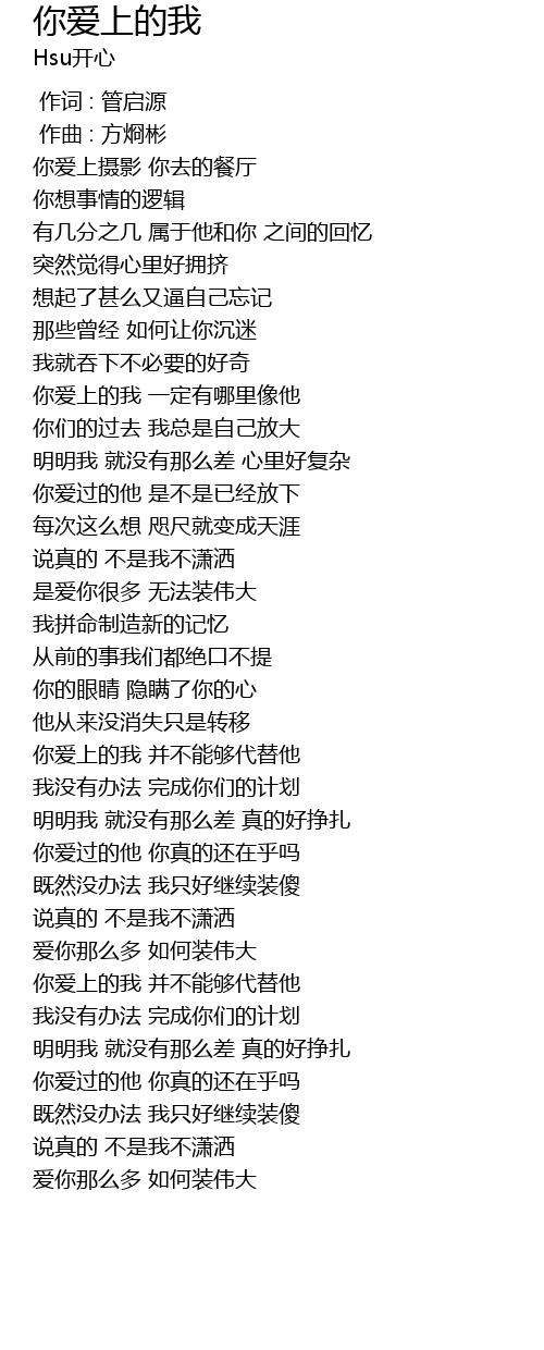 | [01:05.02] | 你爱上的我 一定有哪里像他 |