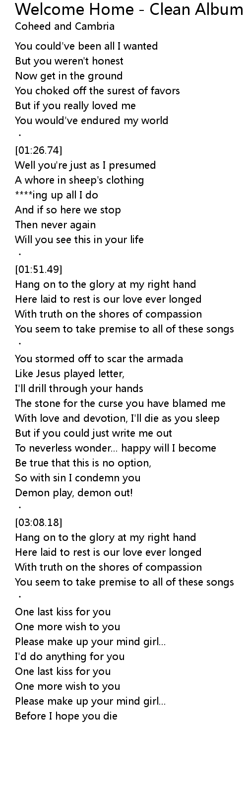 | Song | Welcome Home - Clean Album Version |