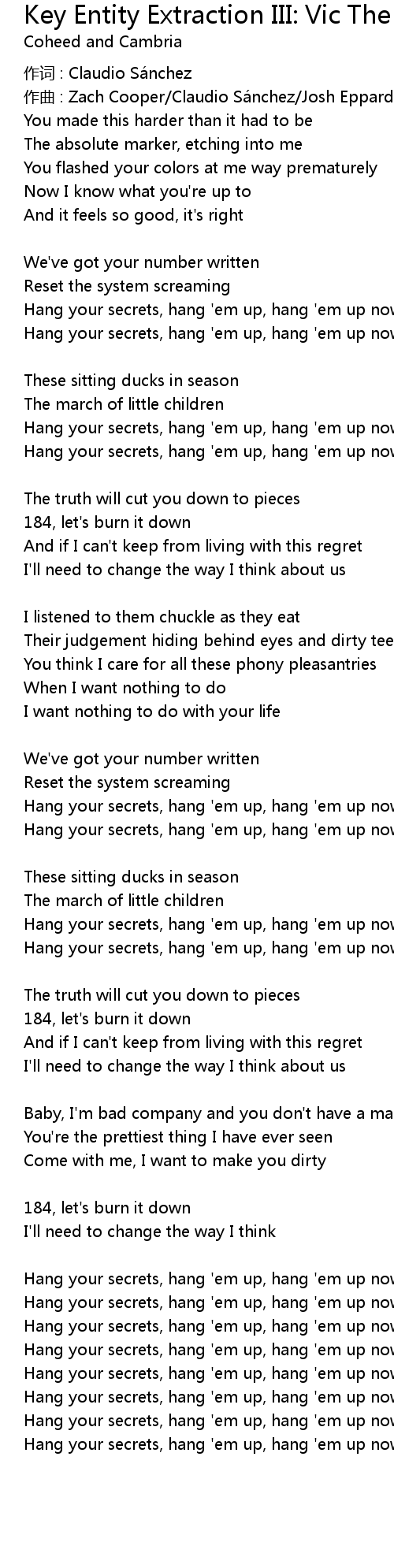 | Song | Key Entity Extraction III: Vic The Butcher |