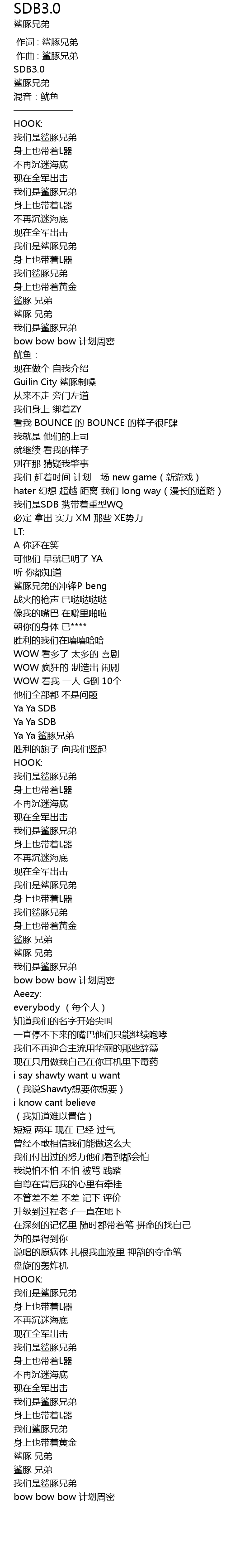 | [01:25.50] | 我们是SDB 携带着重型WQ |