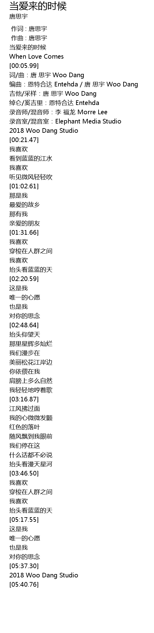| [00:07.92] | 词/曲:唐 思宇 Woo Dang |
