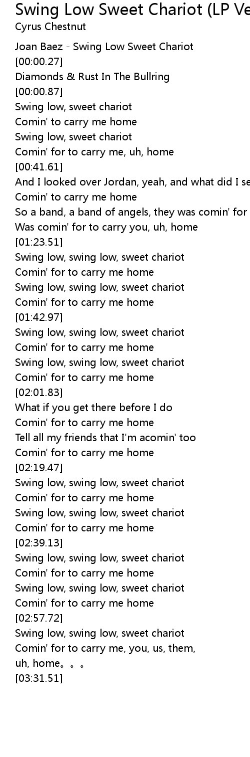 | [00:00.17] | Joan Baez Swing Low Sweet Chariot |