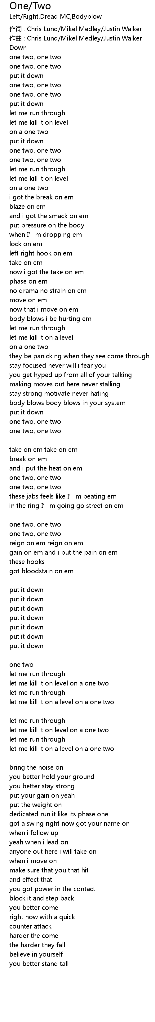 | 作词 : Chris Lund/Mikel Medley/Justin Walker | |