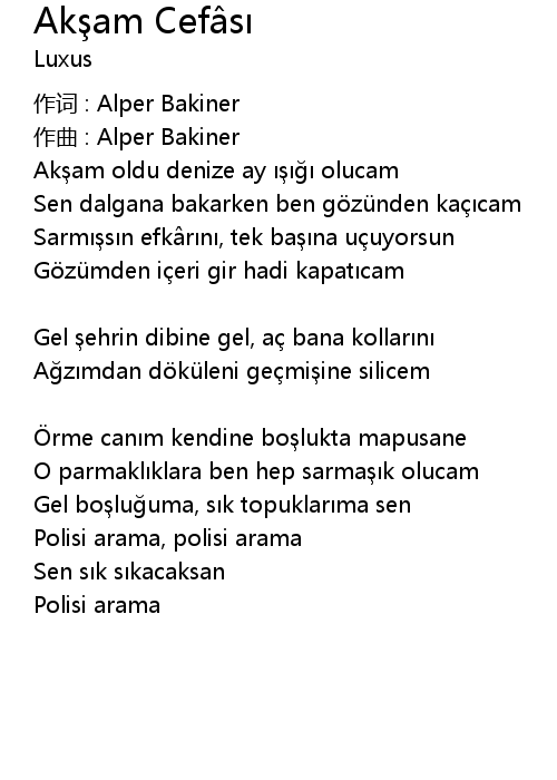 | 作词 : Alper Bakiner | |