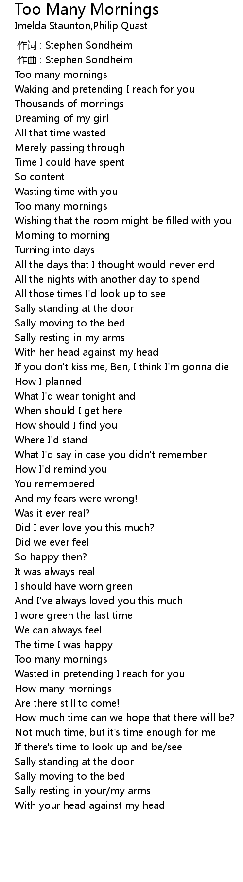 | [00:04.500] | Too many mornings |