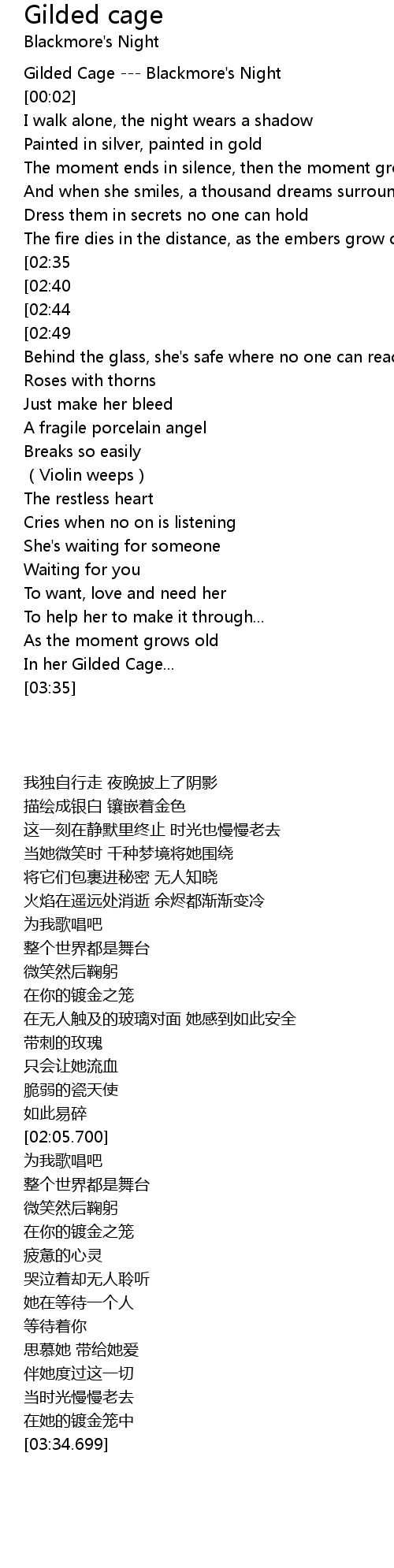 | [01:14][02:49] | From your gilded cage |