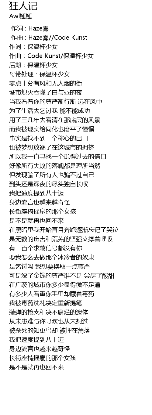 | [00:00.000] | 作词 : Haze雾 |