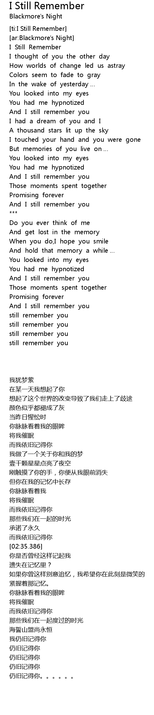 | [04:33.183] | still remember you |