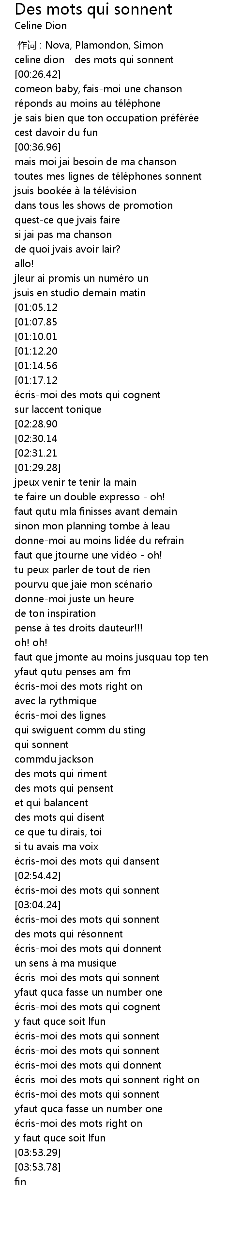 | [03:38.78] | écris-moi des mots qui sonnent |