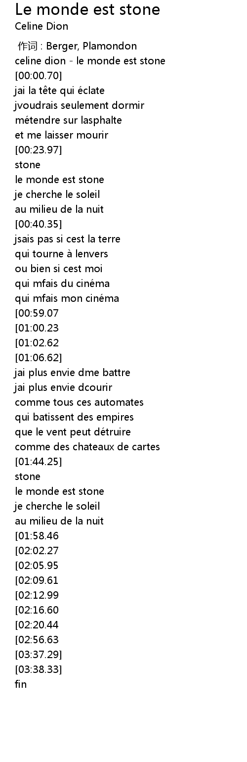 | [00:00.00] | 作词 : Berger, Plamondon |