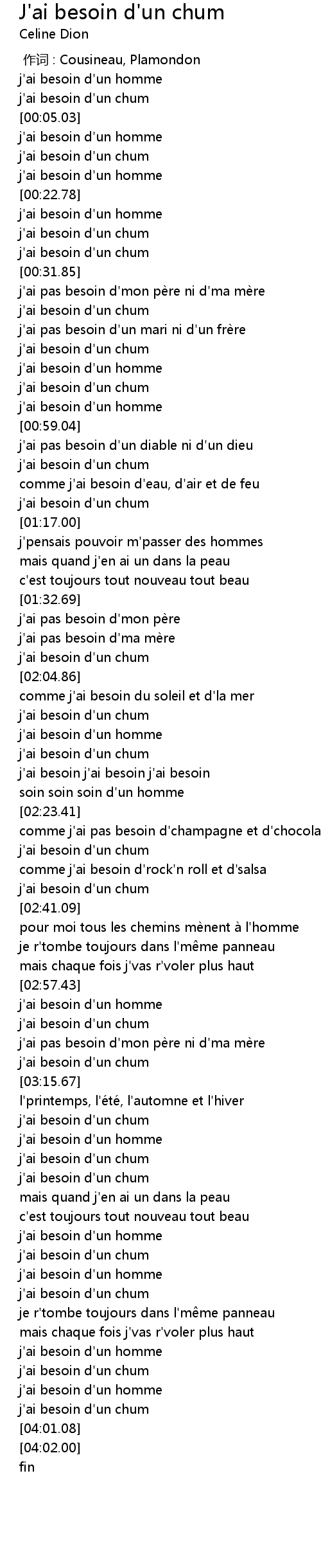 | [02:18.76] | j' ai besoin j' ai besoin j' ai besoin |