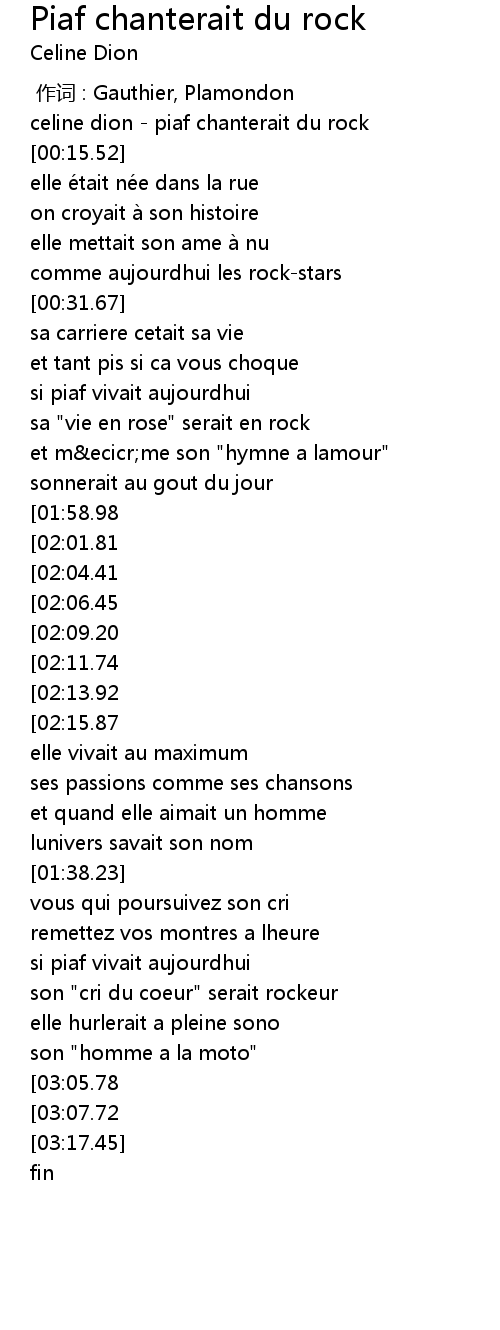 | [00:00.00] | celine dion piaf chanterait du rock |