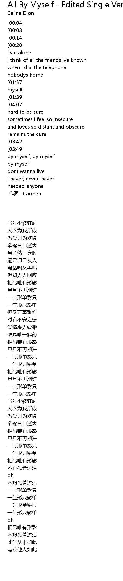 | [00:00.00] | 作词 : Carmen |