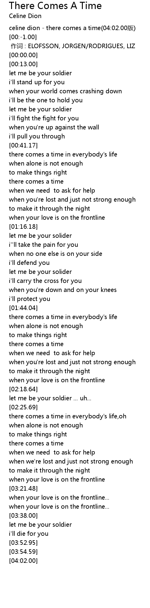 | [00:-2.00] | celine dion there comes a time 04: 02. 00 bǎn |