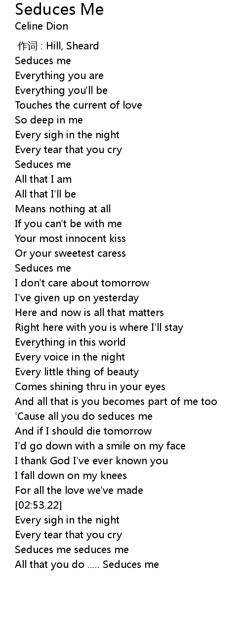 | [03:22.87] | All that you do ..... Seduces me |