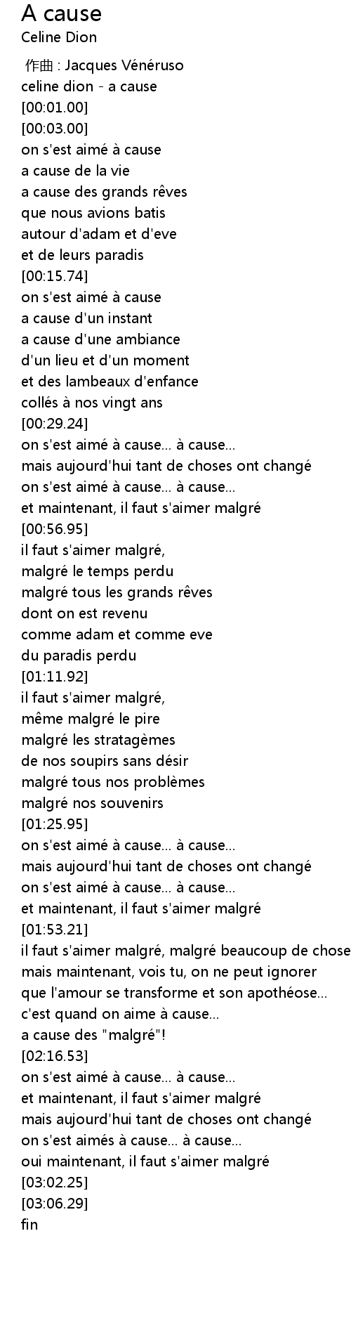 | [00:00.00] | celine dion a cause |