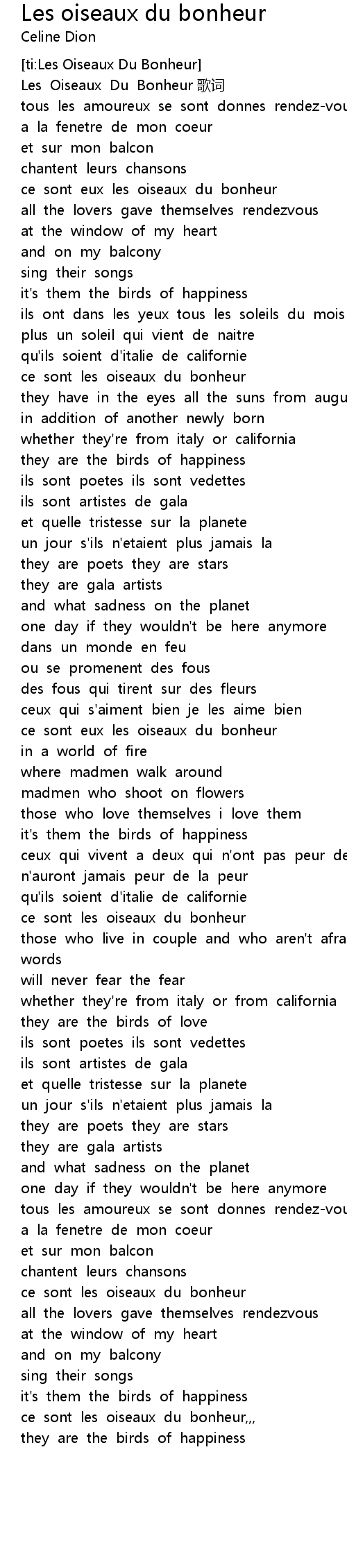 | [00:03.297] | Les Oiseaux Du Bonheur ge ci |