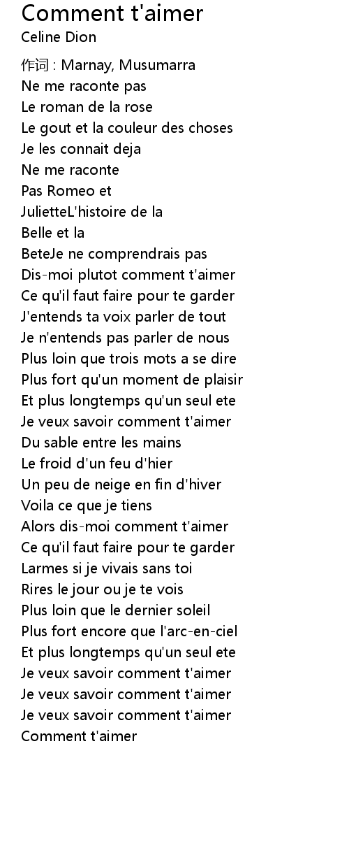| Song | Comment t'aimer |