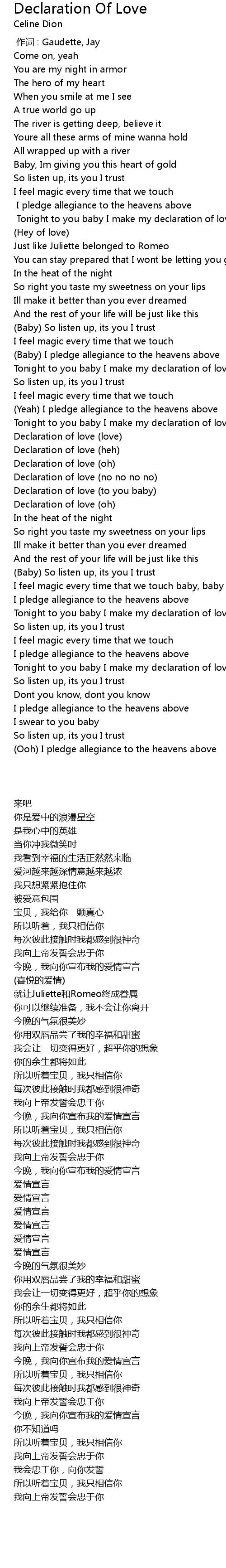 | [02:23.50] | Tonight to you baby I make my declaration of love |