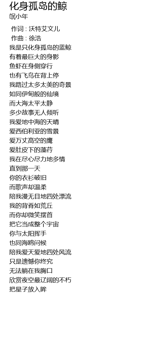 | [00:26.50] | 我是只化身孤岛的蓝鲸 |