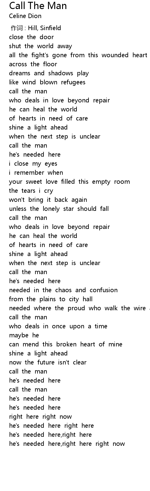 | Song | Call The Man |