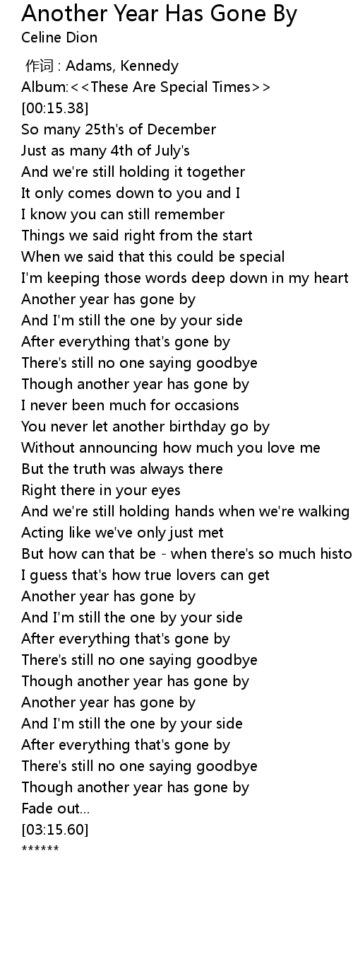 | [01:01.63] | Another year has gone by |