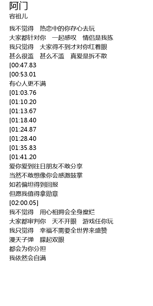 | [03:21.51][01:35.83] | qiu da jia gei ni ren cuo |