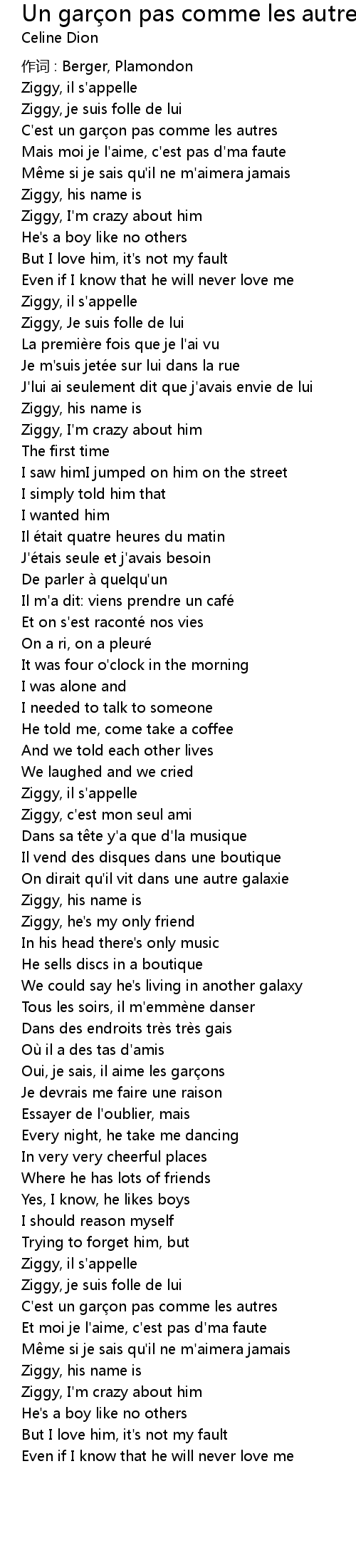| Song | Un garçon pas comme les autres (Ziggy) - Live |