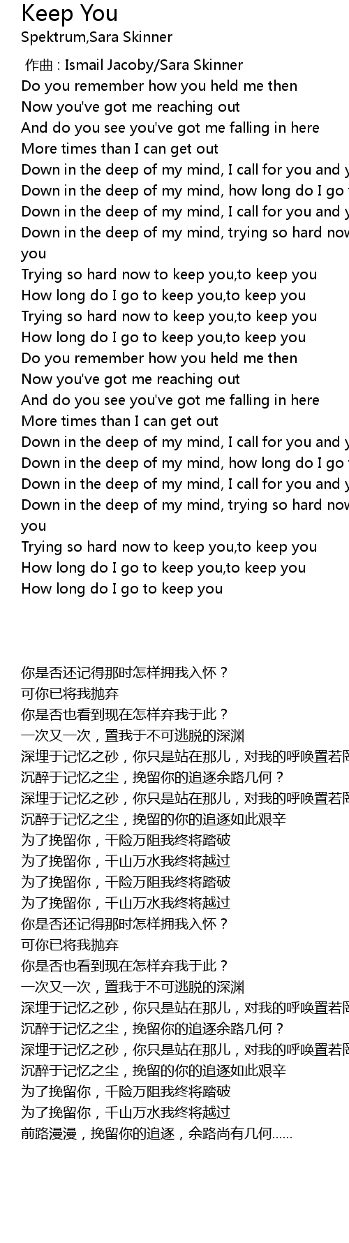 | [02:54.41] | Down in the deep of my mind, trying so hard now to keep you,to keep you |