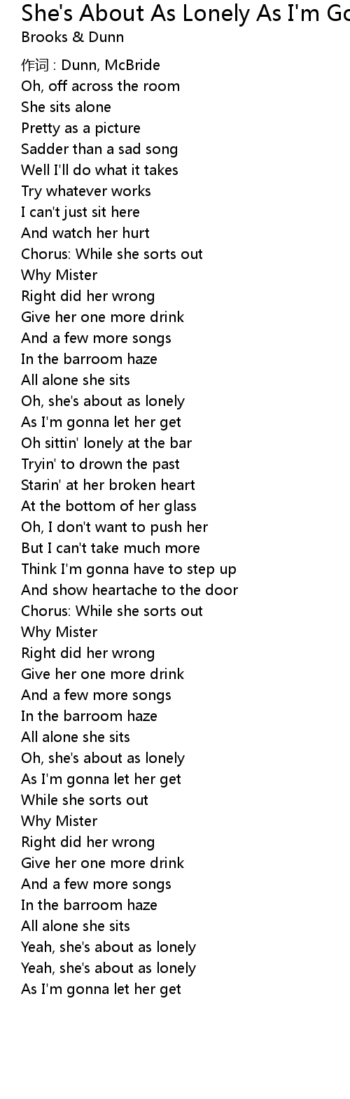 | Song | She's About As Lonely As I'm Going To Let Her Get |