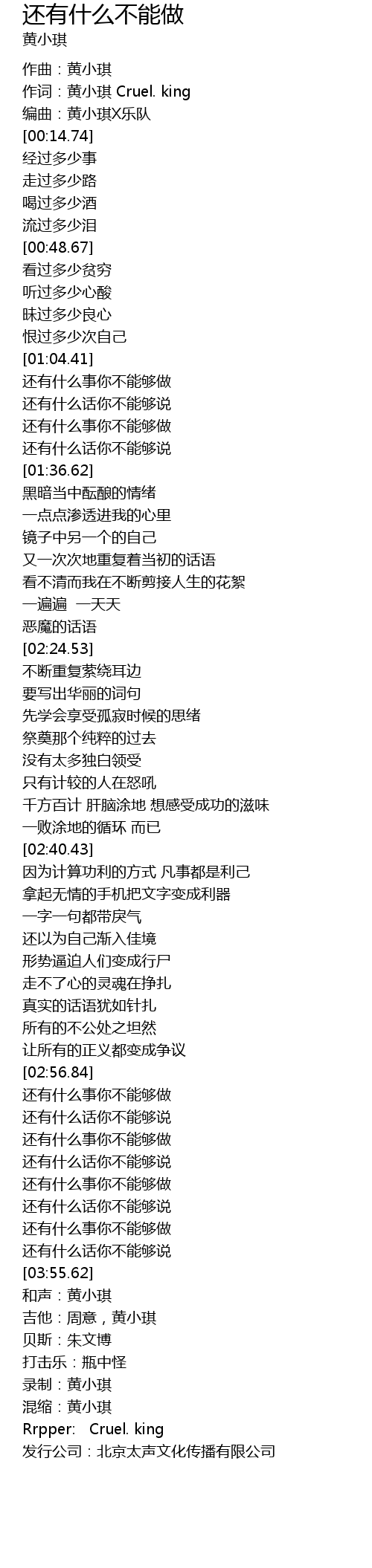 | [00:03.54] | 编曲:黄小琪X乐队 |