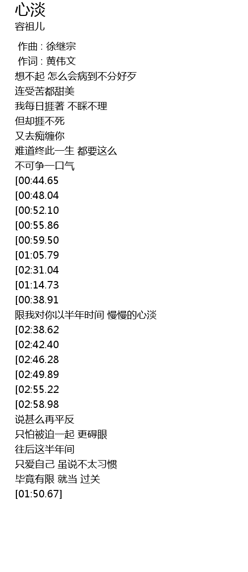| [02:34.94] | 限我对你以半年时间 慢慢的心淡 |