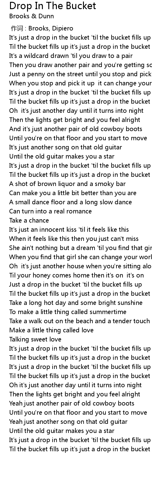 | [00:17.18] | Til the bucket fills up it's just a drop in the bucket |