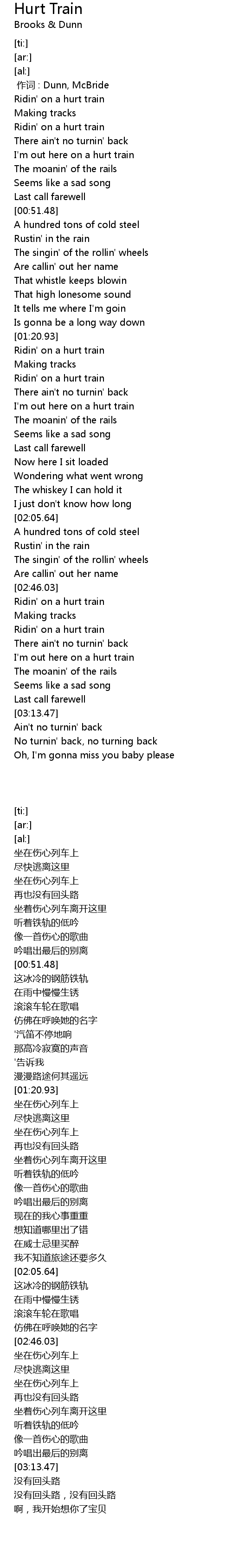 | [02:47.72] | Ridin' on a hurt train |