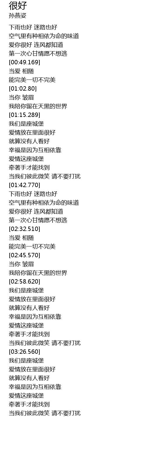 | [03:01.950] | 爱情放在里面很好 |