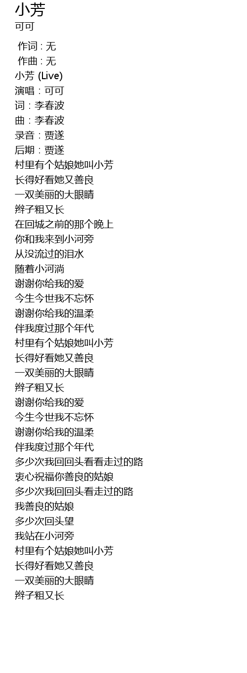 | [01:51.902] | 村里有个姑娘她叫小芳 |